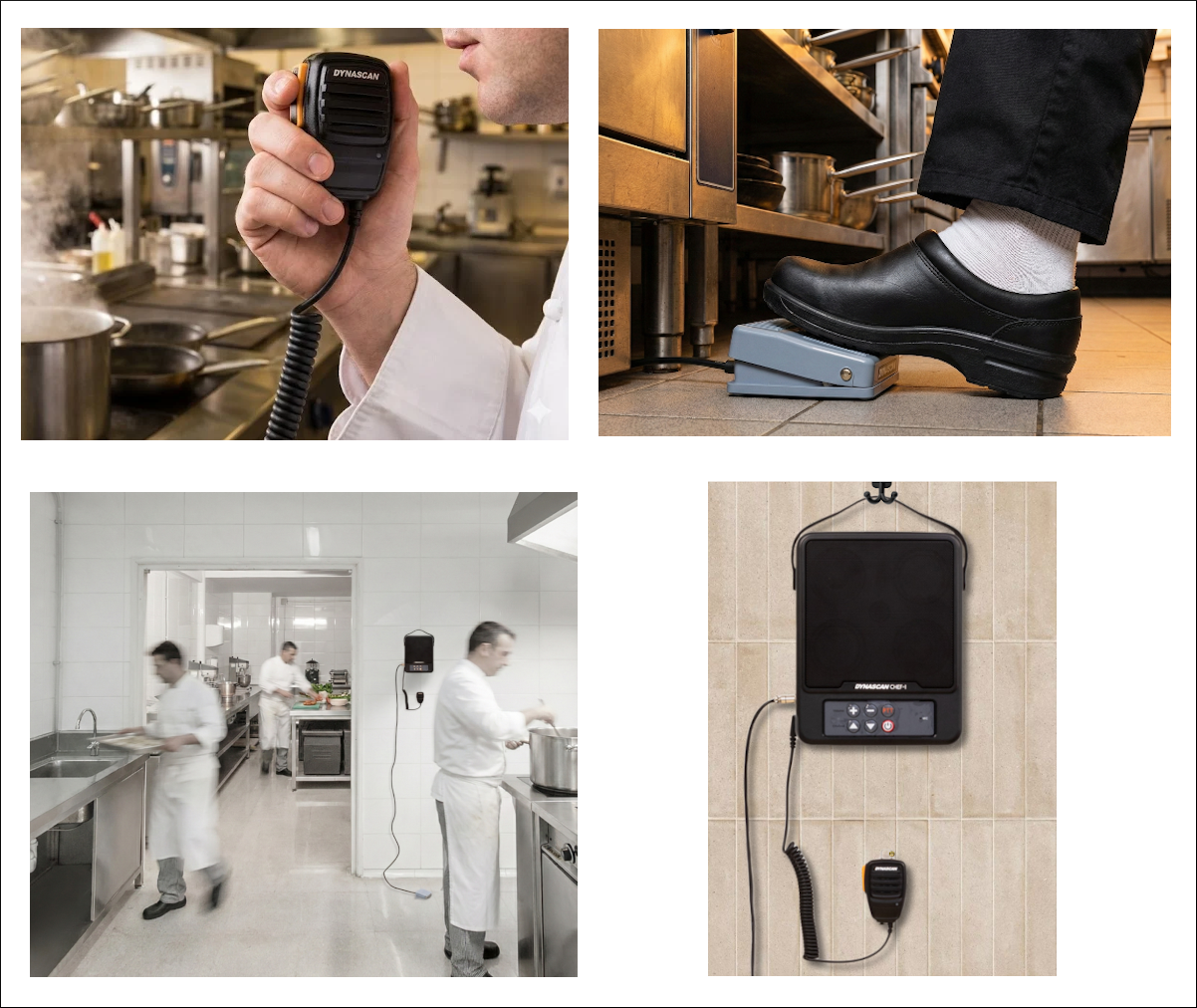Ideal para chefs que no pueden manipular un walkie mientras cocinan.